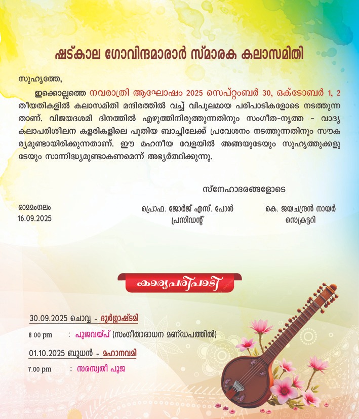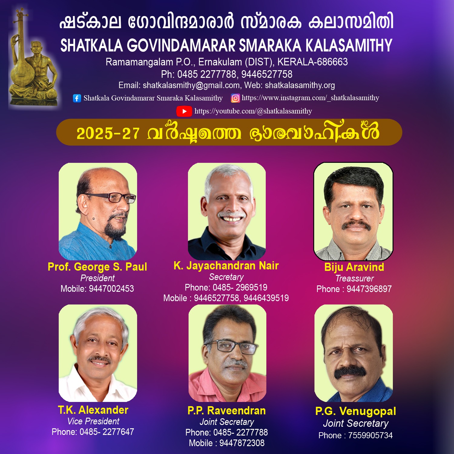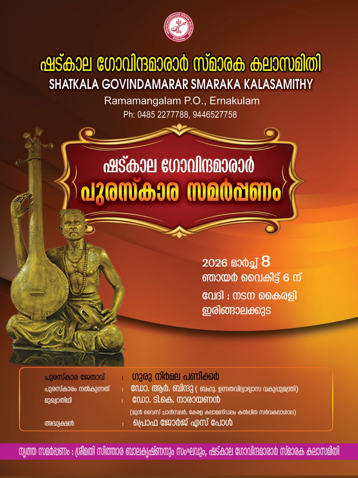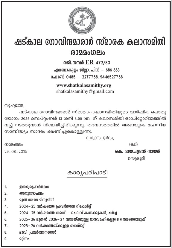 Venue: Shatkala Govinda Marar Smaraka Kala Samithy Auditorium, Ramamangalam