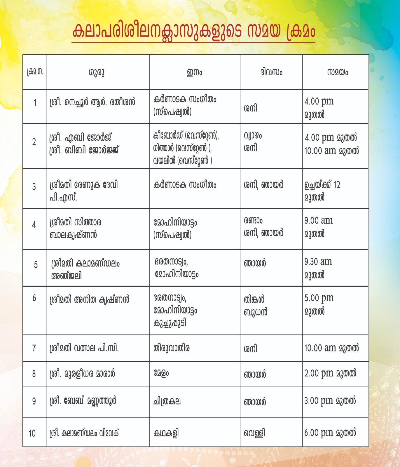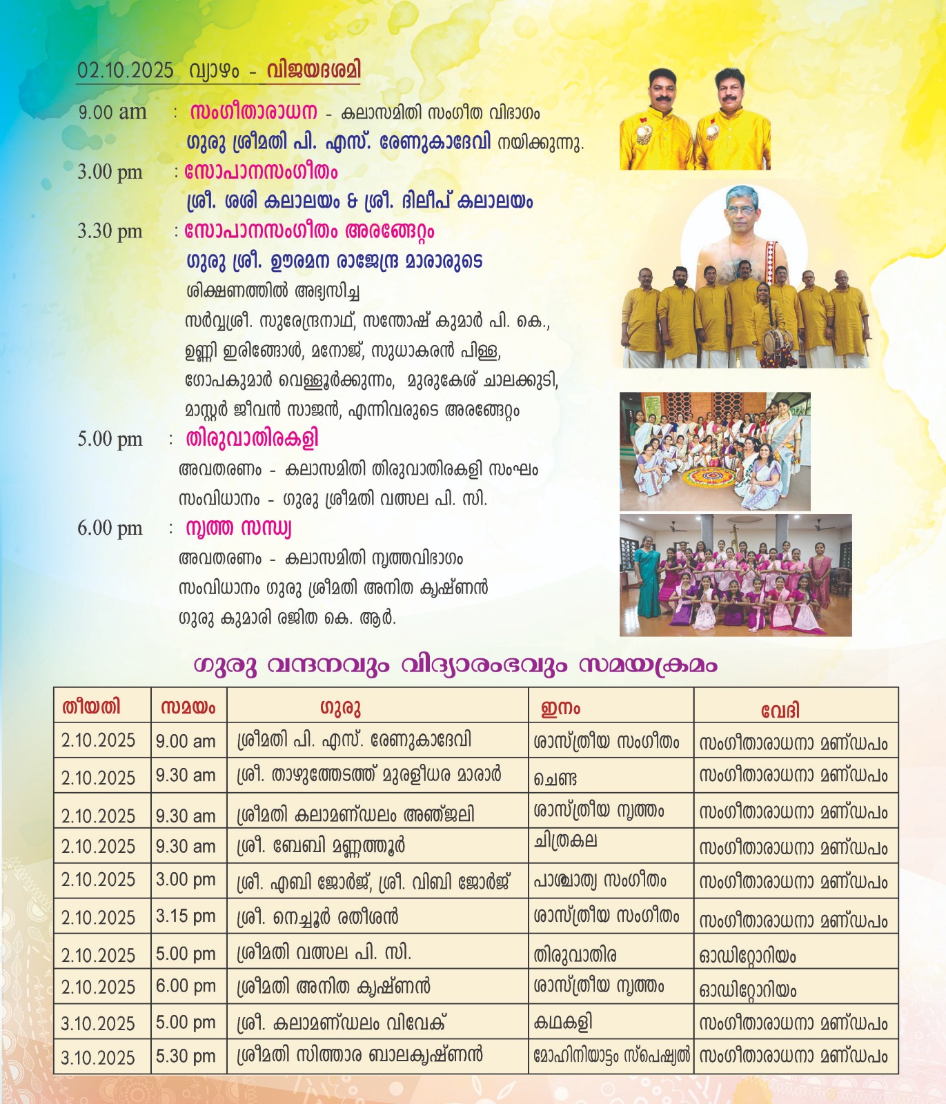 10.00 a.m PANCHARATHNAKEERTHANALAPANAM Vocal Mavelikkara P. Subramaniam